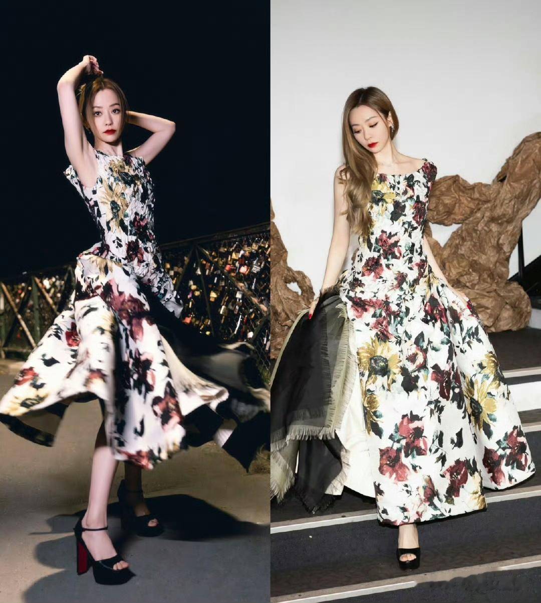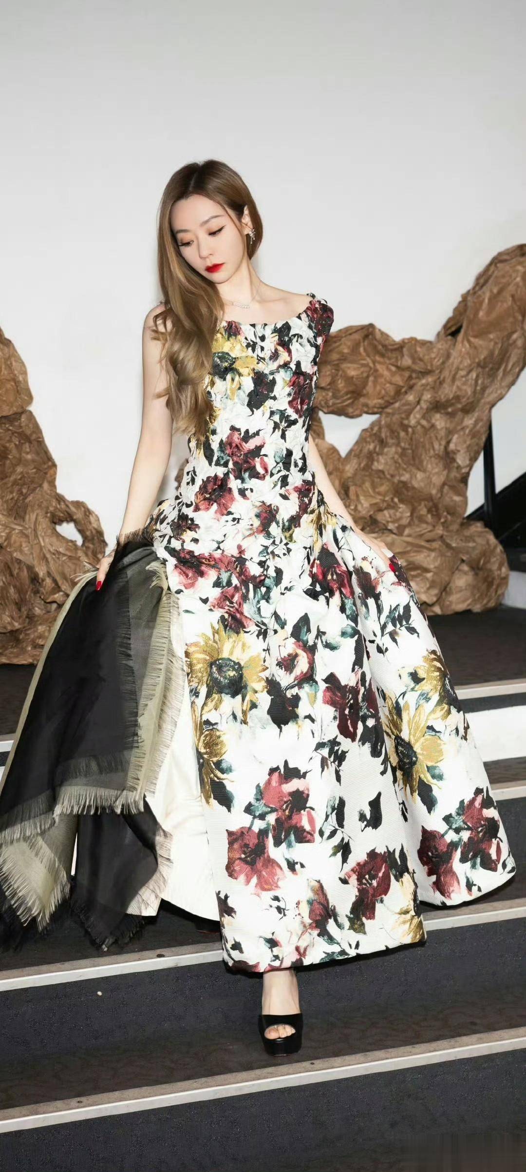 这身繁花造型摒弃了花系穿搭的俗气感,花色明艳雅致、版型修身大气,完美勾勒出曼妙身姿,将浪漫与高级感平衡得恰到好处,尽显她独有的温婉大气气质。